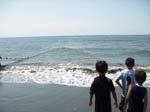 • 上の写真をクリックして下さい、地引網漁を楽しむ人々の拡大写真です!!