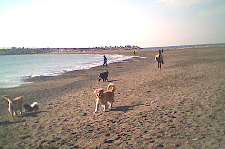 茅ヶ崎の海岸と城ヶ島公園での様子を取り混ぜて冬の寒さの中で元気に遊ぶ子犬を見ます。