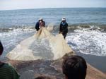 • 上の写真をクリックして下さい、地引網漁を楽しむ人々の拡大写真です!!